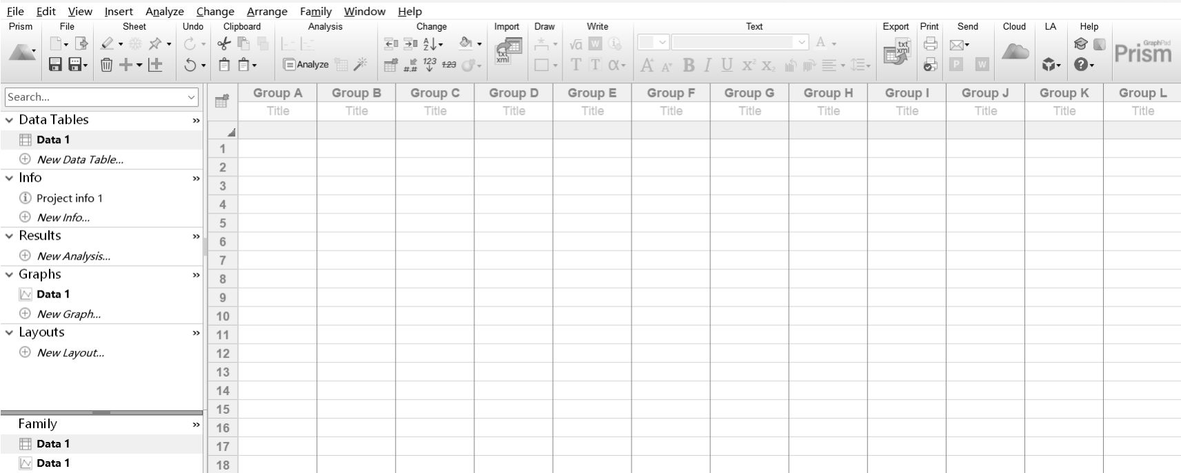 图1.3 GraphPad Prism的操作界面