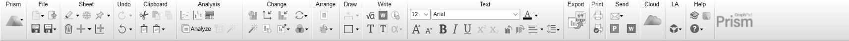注意: 虽然GraphPad Prism的功能被集合在此10个选项中,但是在实操过程中一般很少使用菜单栏而是使用工具栏。