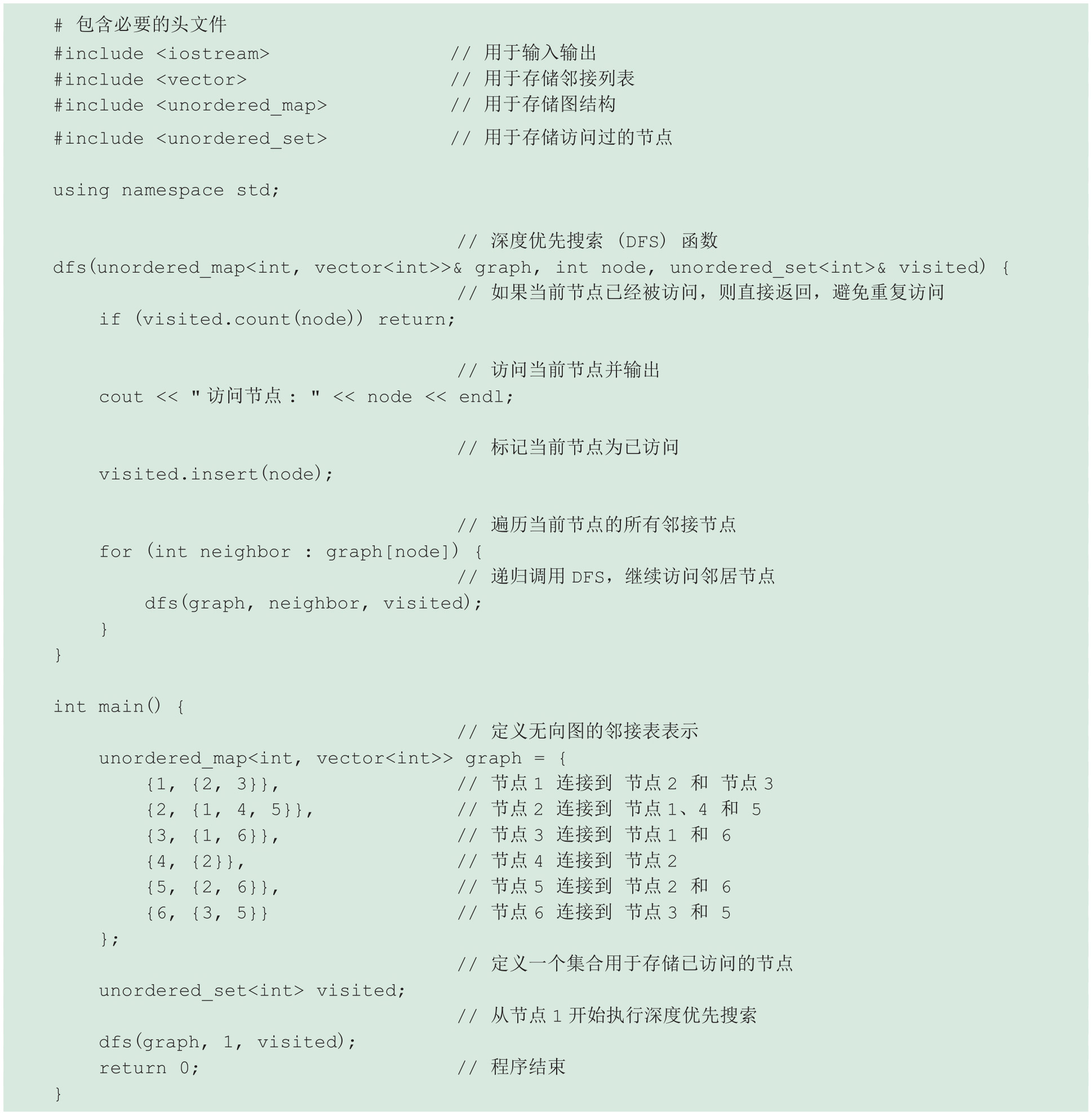 假设学生在学习图论时,遇到了一些困难,不理解如何实现图的深度优先搜索(DFS)。
