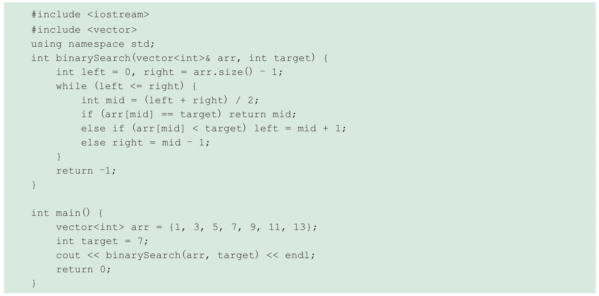 它还可能提供另外一种实现方法,使用mid=left+(right-left)/2来避免(left+right)可能导致的溢出问题。