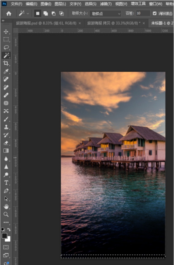 单击图像下方的空白处,空白处出现框形蚂蚁线。