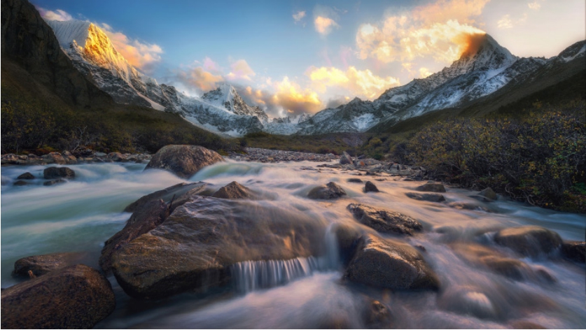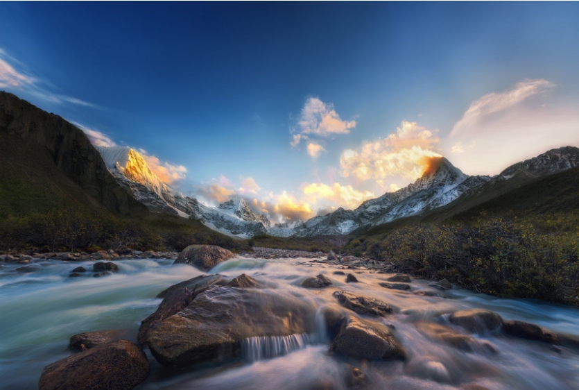 03 拖动上、右定界框,使山坳位于正中心的位置,按Enter键确定裁剪,实现黄金比例构图(见图1.3.15)。