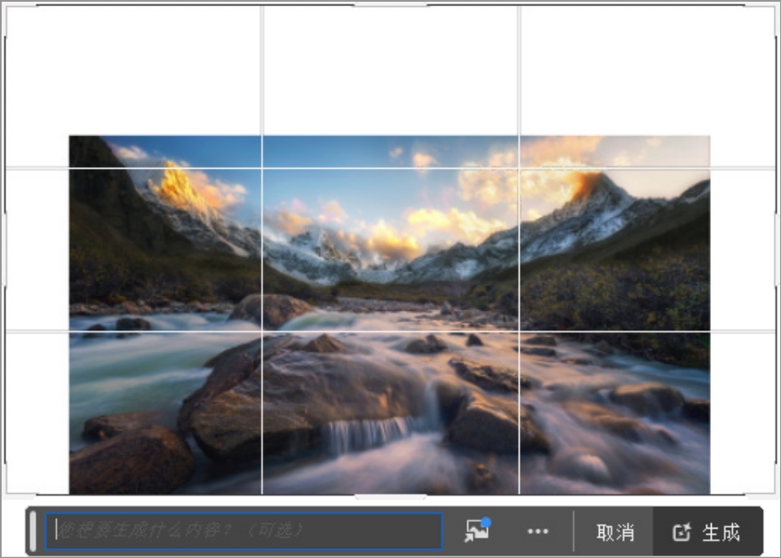 01 单击“裁剪工具”,拖动定界框的左、右、上方向(见图1.3.12),单击上下文任务栏中的“生成”按钮。