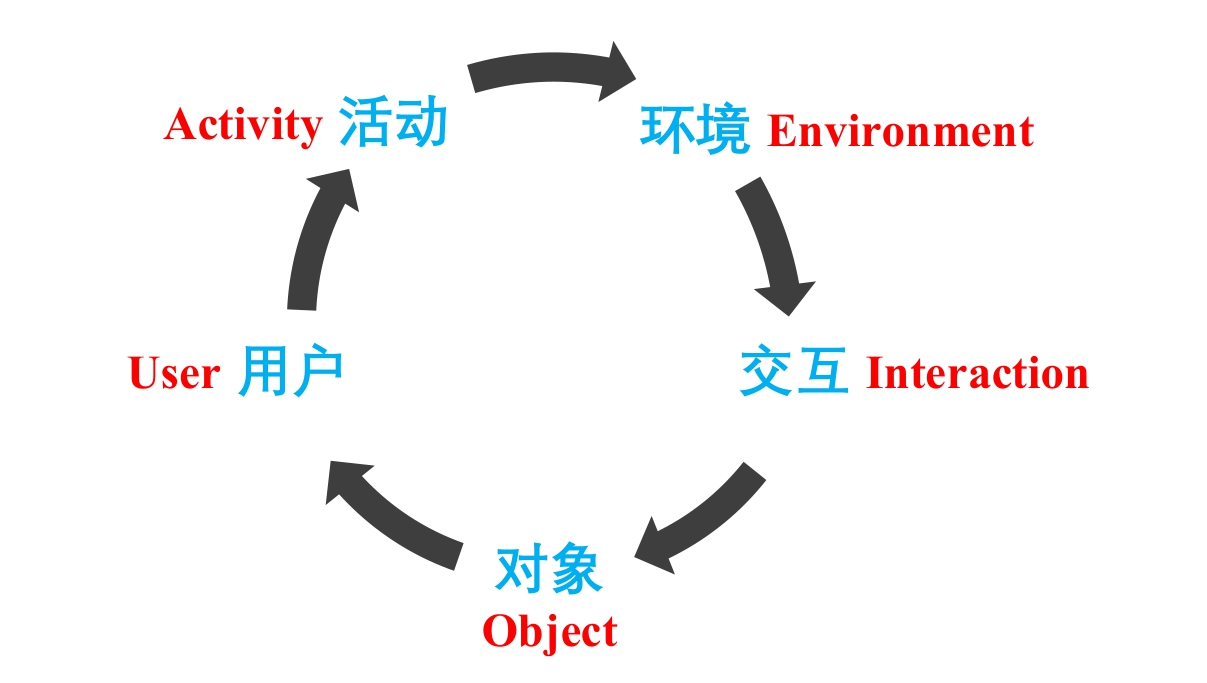 环境(Environment):交互活动发生的场所,包括空间位置、自然环境、人工环境等影响交互行为和结果的因素。