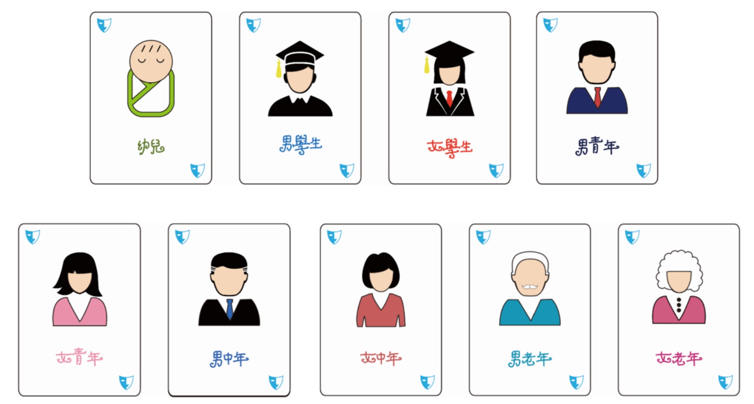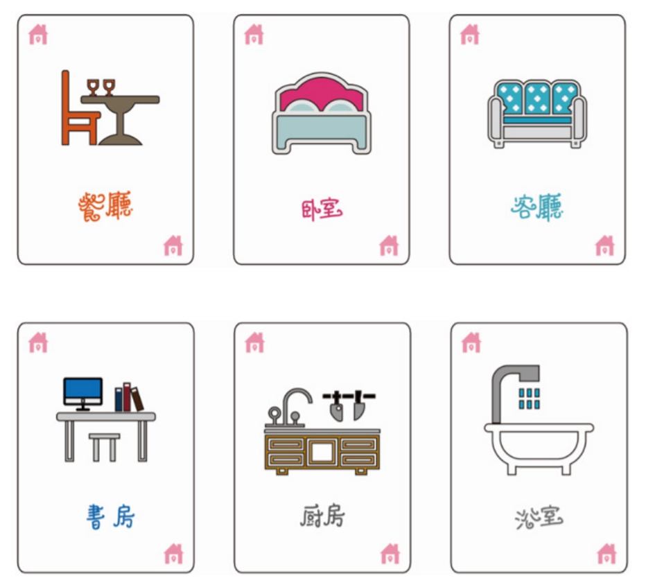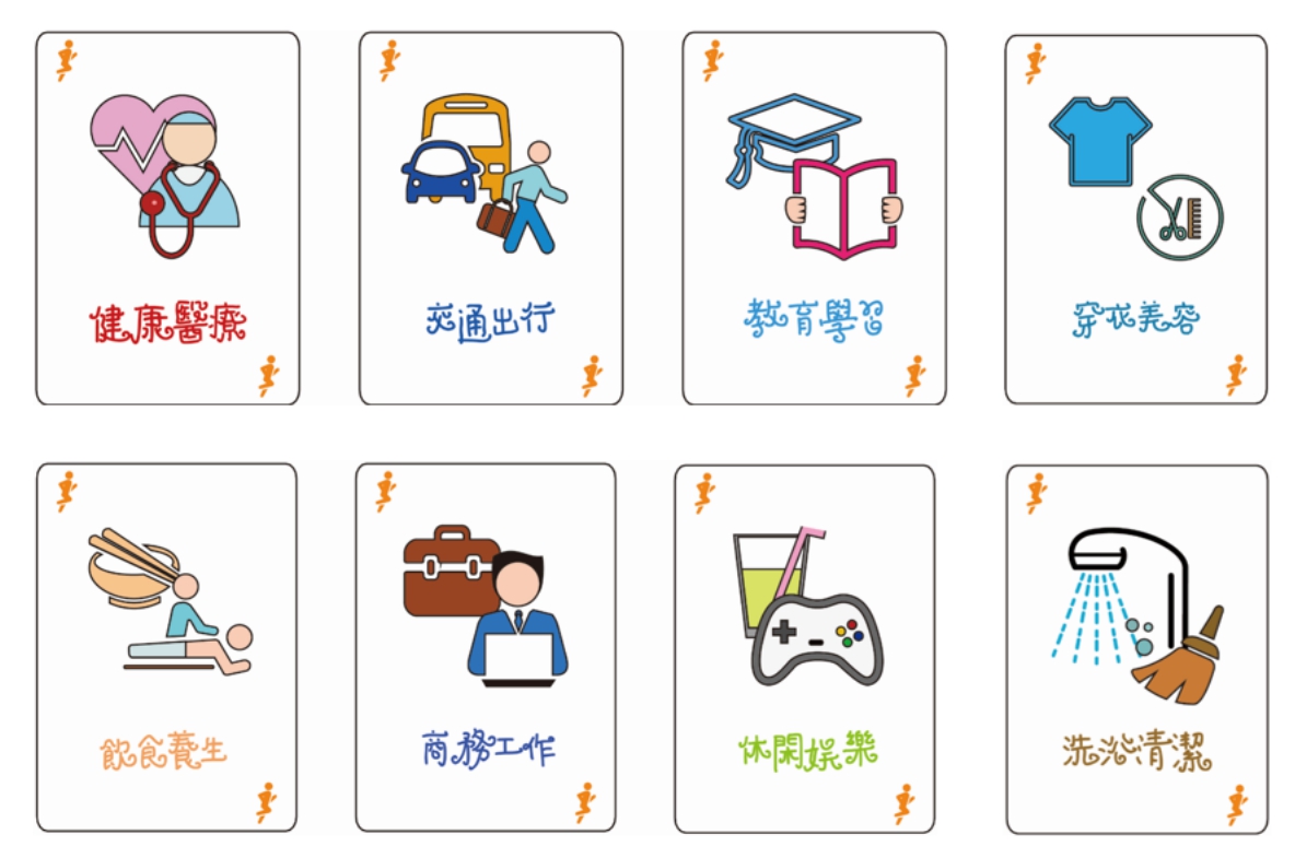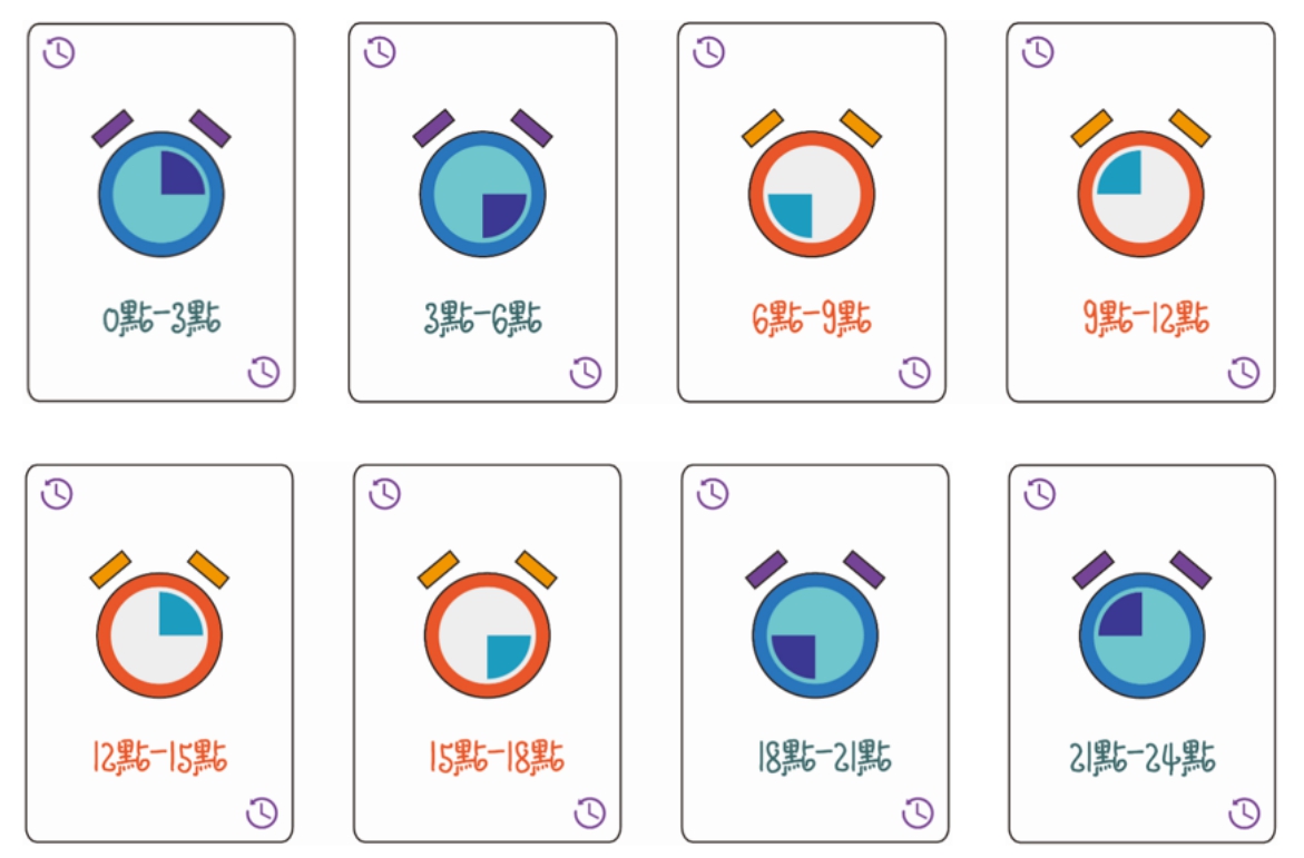 完成设计调研后,基于收集的资料和初步的设计洞察,针对具体设计目标制作概念激发卡片,利用卡片激发设计创意。以智慧家庭系统设计为例,设计团队希望基于智能物联网技术设计出面向未来生活形态的智慧家庭系统,包括实体产品和相应的软件服务系统。针对这一目标,设计制作用户角色(图2-6)、典型用户活动(图2-7)、家庭环境细分空间位置(图2-8)和时间(图2-9)等卡片。用叙事手法描述现有的交互场景,然后再加入创意激发卡片(图2-10),提出新的设计概念。除创意激发卡片外,其他四类卡片覆盖了智慧家庭系统与用户交互的情境要素以及这些要素可能出现的具体情况。用户角色卡片包含典型家庭场景中可能存在的用户类型;典型用户活动卡片包含用户在家庭环境中可能开展的各类活动;家庭环境细分空间位置卡片包含典型家庭环境中对内部空间的划分和功能定义;时间卡片包含一天的24小时,每3个小时为一个单元。