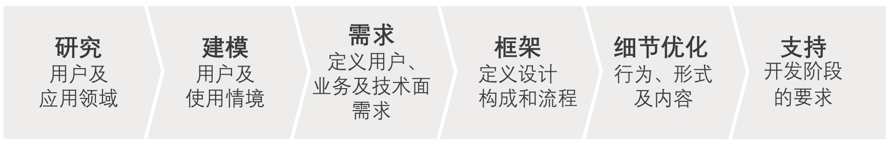 研究阶段运用人种学研究技术(实地观察和情境访谈)获取有关产品的真正用户和潜在用户的定性数据。这一阶段的工作还包括考察竞争对手产品,研究分析市场现状、技术白皮书和品牌战略,并对产品利益相关者、开发人员、行业专家和特定领域技术专家进行访谈。