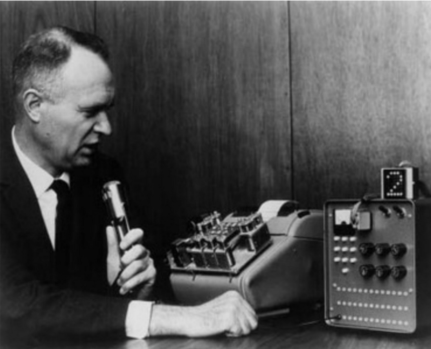 近年来发展最为迅速,商业运用较为成功的自然交互技术当数语音交互。语音交互系统发展的历史并不短,早在1952年,贝尔实验室就开发了能够识别阿拉伯数字的系统Audrey。1962年,IBM发明了第一台可以用语音进行简单数学计算的机器Shoebox(图1-22)。在发展了半个多世纪后,语音交互仍没有达到成熟应用的水平,语音的识别和理解的正确率和准确率依然有待提升,文本生成语音的自然度和流畅性也影响着用户的听觉体验。