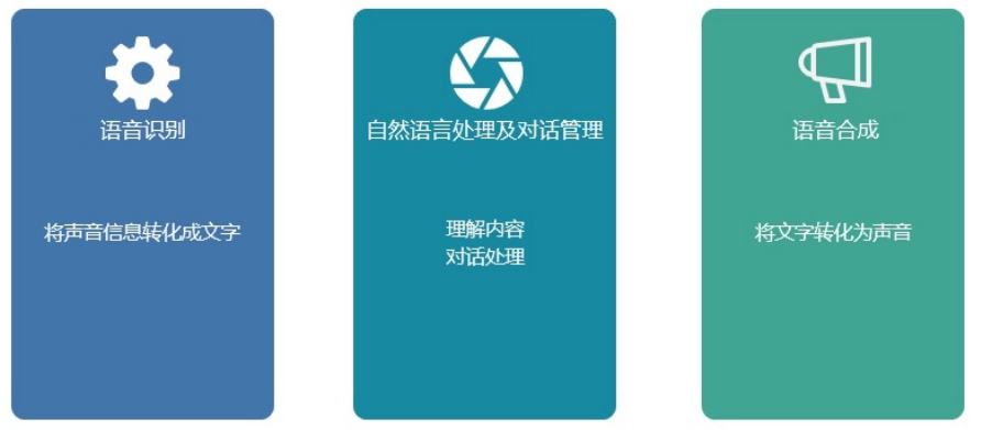 如图1-23所示,一套完整的语音交互系统有三个典型模块:语音识别(Automatic Speech Recognition,ASR)将声音转换成文字;自然语言处理(Natural Language Processing,NLP)及对话管理将文字的含义解读出来,并给出反馈;最后通过文本-语音转换(Text to Speech,TTS)将反馈内容转换成声音,最终播放出来。
