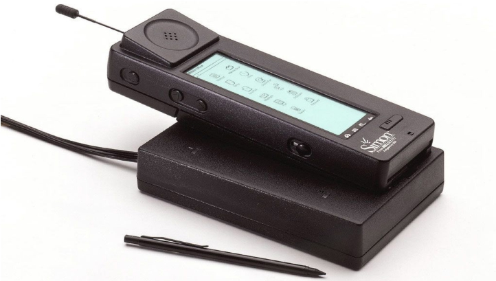 1993年,IBM和贝尔南方共同开发了Simon通信设备(图1-17),这很可能是世界上第一款智能手机(尽管当时还没有这个名词)。它不仅能翻页,还集成了收发E-mail、日历管理、预约计划、电话簿、计算器以及笔写式画板等多种实用功能。它还有一个电阻性触摸屏,支持用户利用手写笔操作菜单并输入数据。