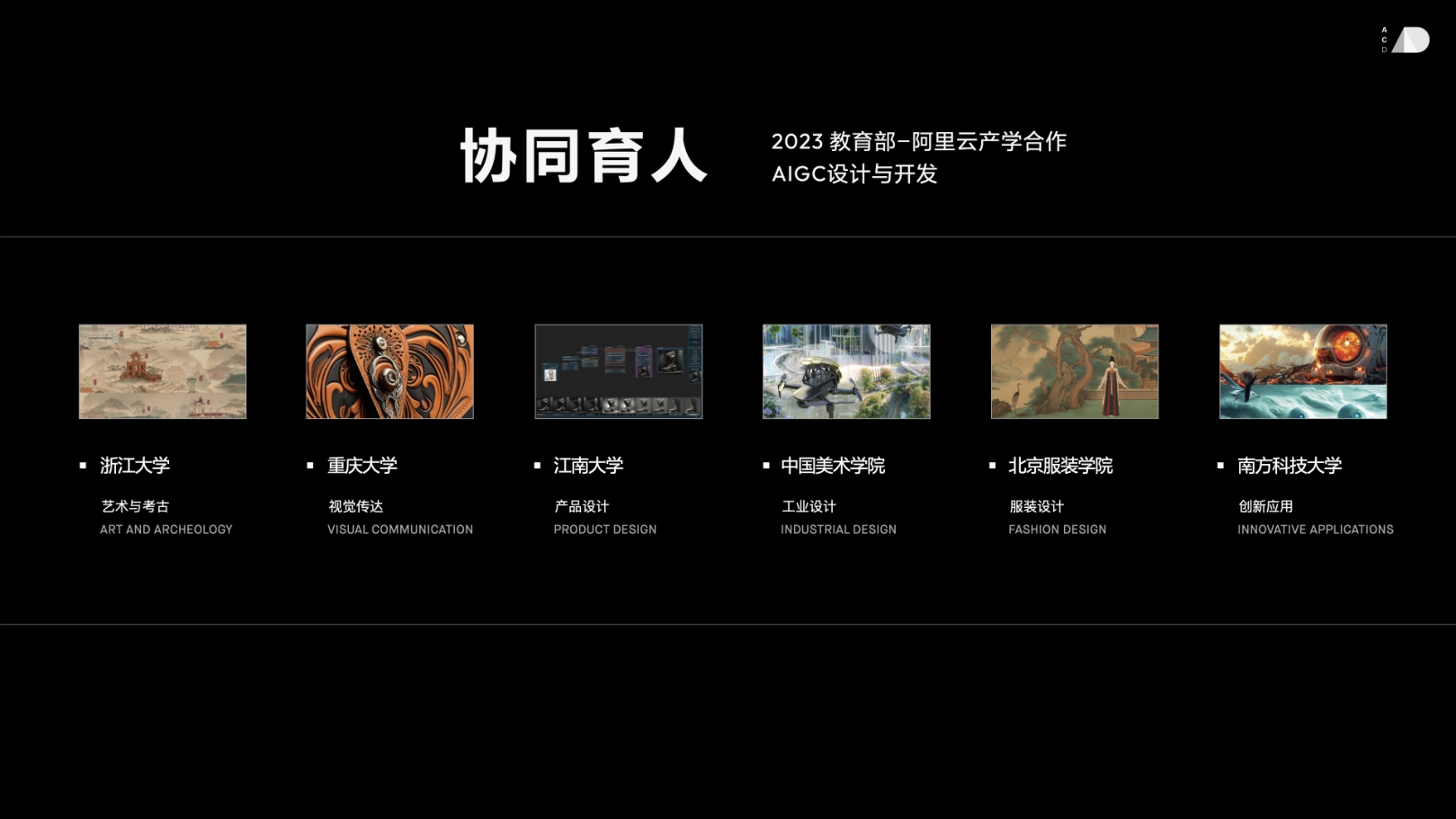 为了推动AI设计的发展,我们不仅在内部进行了大量实践,还积极与教育行业和各行业伙伴合作。我们与教育部联合启动了协同育人项目,与多所高校合作开展AIGC课程,培养了一批具备AI设计能力的新型人才。同时,我们也与行业内的领军企业合作,共同探索AI设计在各个领域的应用前景。