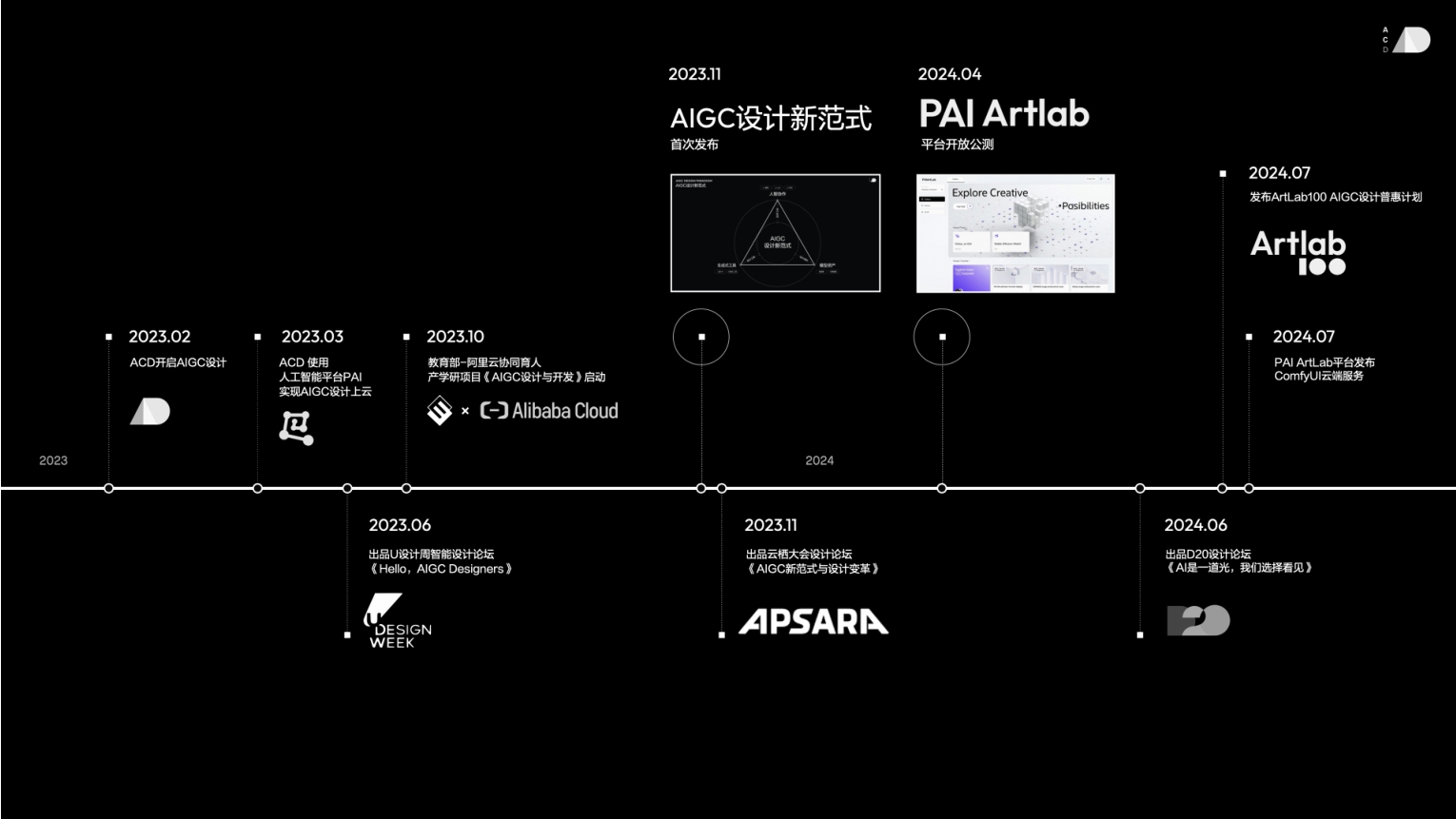 为了推动AI设计的发展,我们不仅在内部进行了大量实践,还积极与教育行业和各行业伙伴合作。我们与教育部联合启动了协同育人项目,与多所高校合作开展AIGC课程,培养了一批具备AI设计能力的新型人才。同时,我们也与行业内的领军企业合作,共同探索AI设计在各个领域的应用前景。