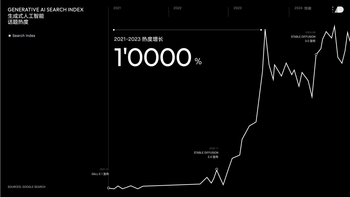 AIGC的爆发并非偶然。从2021年至2023年,AIGC的狂潮涌向设计群体,生成式人工智能在网络上的话题热度增长了惊人的10000%。同时,AI图像生成模型如Stable Diffusion、Hugging Face等的增长也证明了这一领域的蓬勃生机。然而,AIGC的快速发展也伴随着争议:一方面,有人担忧AI会取代设计师的工作,导致大量失业;另一方面,更多的人则看到了AI为设计带来的无限机遇。国外一些数字艺术网站甚至发起了抵制AI的运动。但正如工业革命初期的卢德运动一样,每一次生产力的变革都会带来挑战与机遇,关键在于我们如何选择面对。