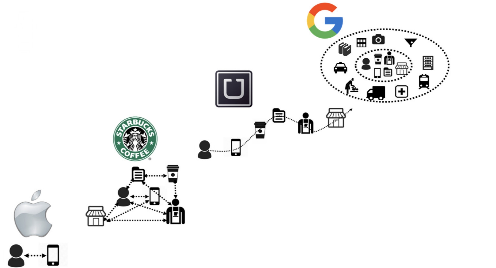 目前,设计问题已经从产品设计转变为更为复杂的领域。例如,苹果公司是首个提出“我们不仅是在设计产品,而是在设计与人类交互的方式”的公司。随后,星巴克的CEO表示“我们不仅在卖咖啡,我们卖的是社交体验”。Uber和Airbnb则强调整个客户旅程的服务设计。而现在Google等公司所涉及的生态系统是一个超越单一学科的庞大系统,我们设计师必须与其他学科协作。