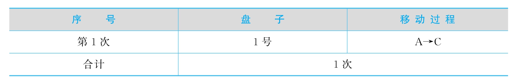 (2)第二步非常简单,直接将最大的盘子从A柱移动到C柱。