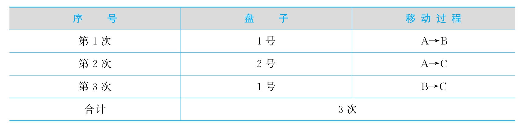 (2) n =2时,2个盘子需要借助其他柱子才能完成。