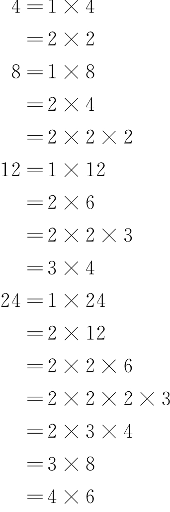 图3-3 4、8、12和24的从2开始进行因数分解的示意图