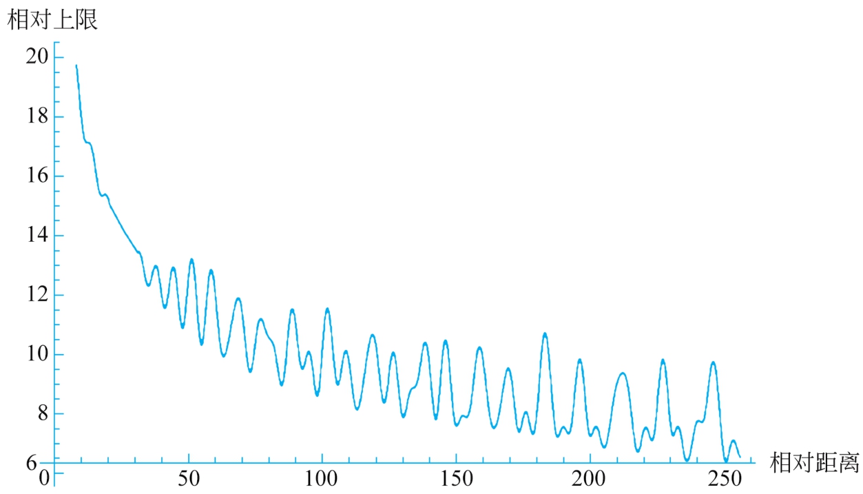 从图2 . 1可以看到,在RoPE编码方式下,随着相对距离变大,上述内积结果出现衰减趋势。