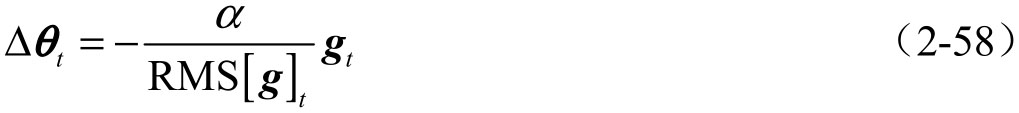 RMSprop和Adadelta几乎同时出现,都是为了解决AdaGrad学习率急剧减小的问题。RMSprop实际上与前面推导的Adadelta的第一个更新向量是相同的。RMSprop同样通过平方梯度的指数衰减平均来缩放梯度,从而实现自适应学习率。