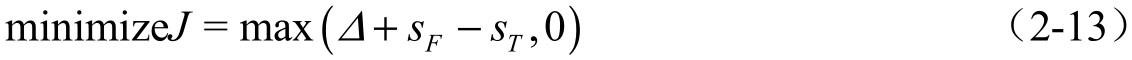 这个公式实现了一个基本想法,但是并没有足够的安全边界,也就是说, s F 和 s T 靠得太近了。可以加入一个安全边界 Δ ,使得目标函数在 s T - s F < Δ 时计算代价,而非在 s T - s F <0时才计算。修改公式(2-12)如下: