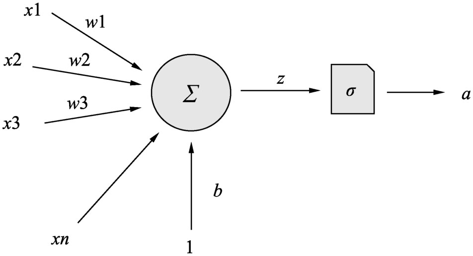 在sigmoid神经元中,输入向量 x 首先被缩放、求和,然后加上偏置单元,最后经过压缩的sigmoid函数处理,如图2-1所示。神经元是构成神经网络的基本单元之一,也是允许网络引入非线性特性的多种函数之一。