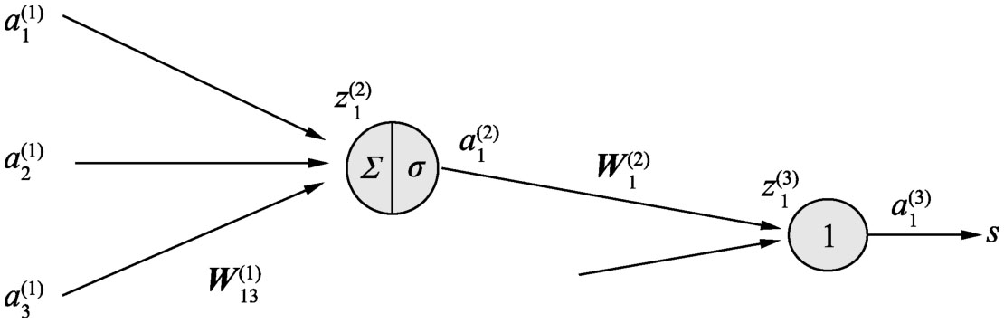 如果将不同神经元的权重表示为{ w (1) ,…, w ( m ) },将偏置表示为{ b 1 ,…, b m },可以将相应的线性组合激活为{ a 1 ,…, a m }: