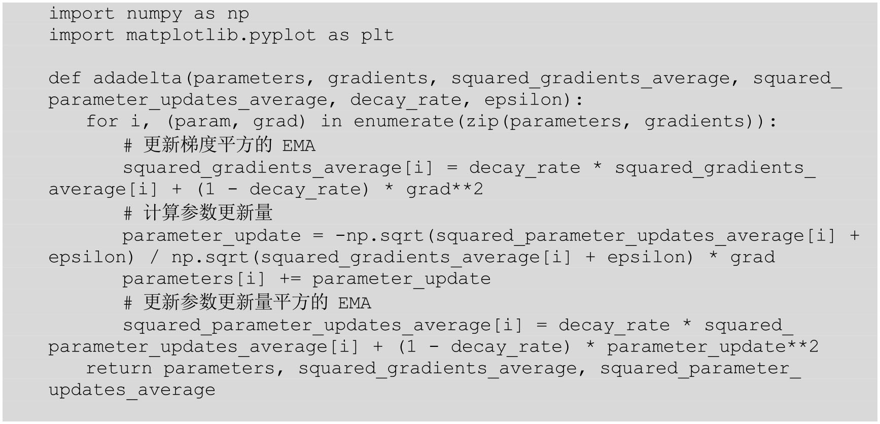 的直接影响,这可能会导致在参数更新中出现较大的波动,因为它没有充分考虑参数更新的大小。Adadelta引入了参数更新的平方的衰减平均