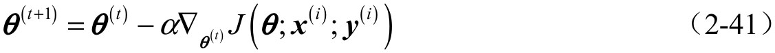 其中, e 是一个小的数值(通常在1×10 -5 左右)。 J ( θ ( i +) )表示在进行前向传播时,给定输入的情况下,参数 θ 的第 i 个元素被扰动+ e 时计算的误差。 J ( θ ( i -) )表示在相同输入情况下,参数 θ 的第 i 个元素扰动- e 时计算的误差。因此,通过两次前向传播,可以近似计算模型中任何给定参数元素的梯度。这种数值梯度的定义直接来源于导数的定义。虽然这种数值梯度计算方法比较精确,但是每次计算单个元素的梯度都需要在网络中进行两次前向传播,计算代价非常高。因此,这种方法通常仅用于验证梯度的正确性,在实际训练中并不使用。