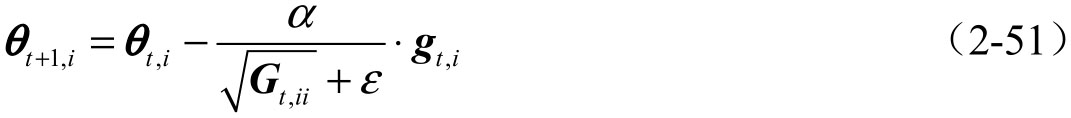 由于 G t 包含对所有参数 θ 的过去梯度的平方和,现在可以通过执行 G t 和 g t 之间的逐元素矩阵-向量乘法(用符号⊙表示)来向量化实现: