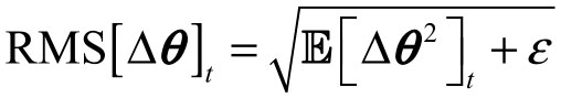 分母就是梯度的均方根(Root Mean Square,加权平均也是平均),所以可以进一步简化为: