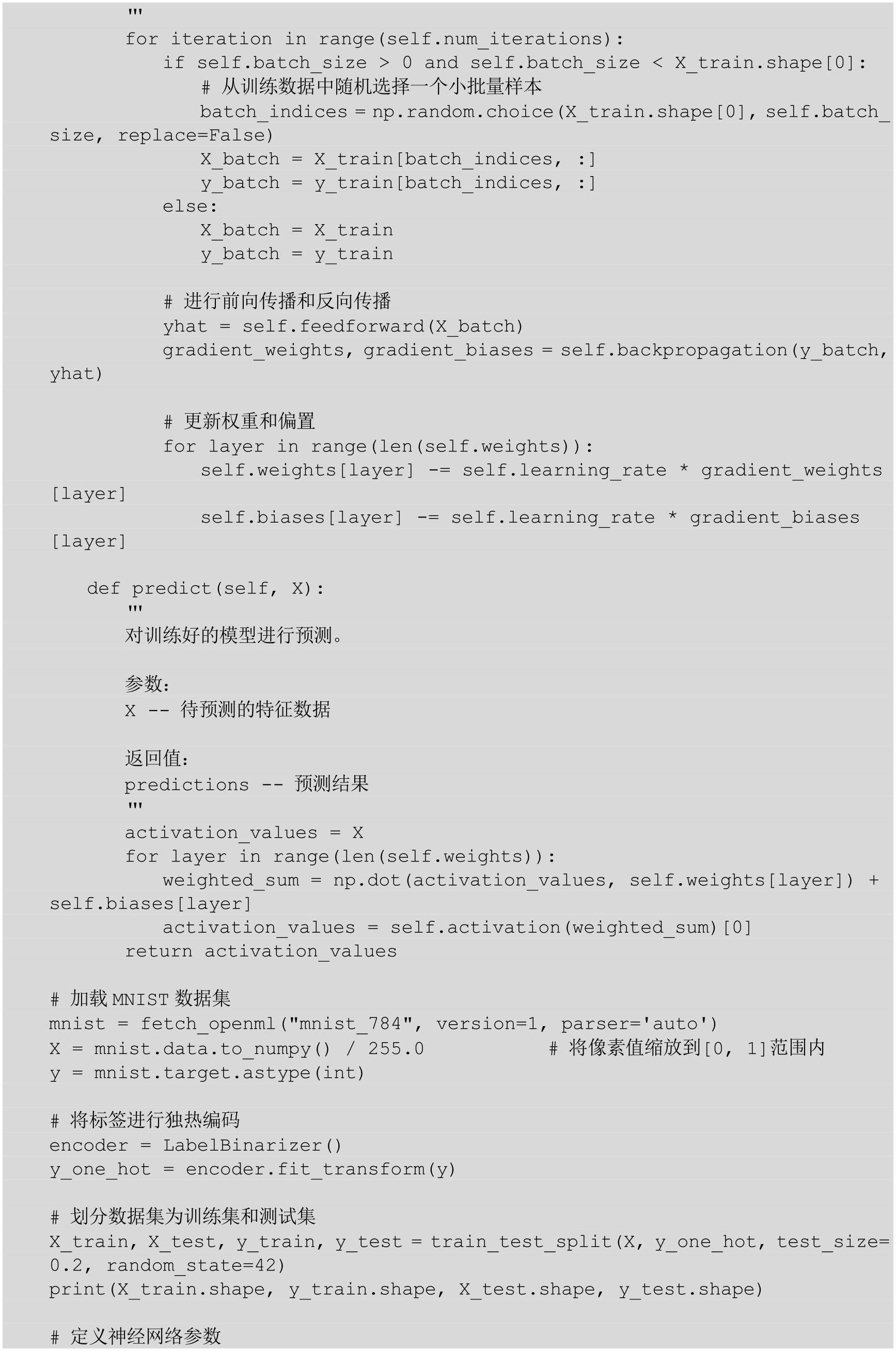 (3)更新参数:利用梯度下降法或其变体,将计算得到的梯度用于更新每一层的权重和偏置,逐步逼近最优解。