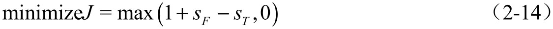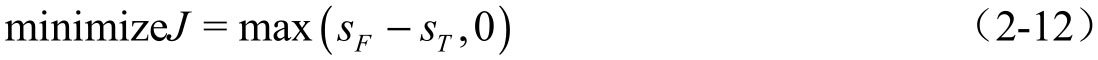 这个公式实现了一个基本想法,但是并没有足够的安全边界,也就是说, s F 和 s T 靠得太近了。可以加入一个安全边界 Δ ,使得目标函数在 s T - s F < Δ 时计算代价,而非在 s T - s F <0时才计算。修改公式(2-12)如下:
