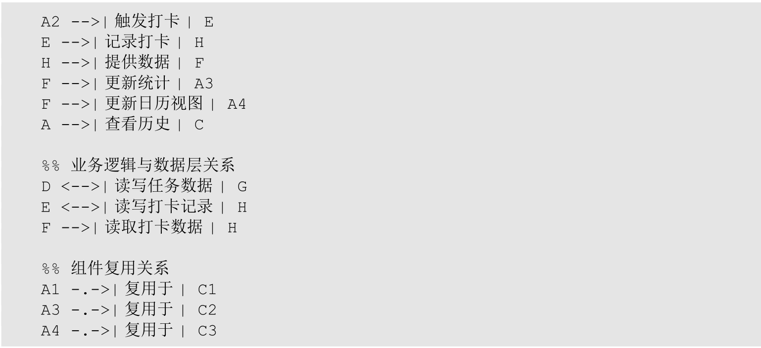 除此之外,可以直接将架构图复制给Lovable或者Cursor,它可以基于架构图将完整产品开发出来。以“每日打卡”应用为例,以下也是用该Prompt生成的产品架构Mermaid代码和使用Cursor一次性生成的产品效果链接,感兴趣的读者可以自行体验一下。