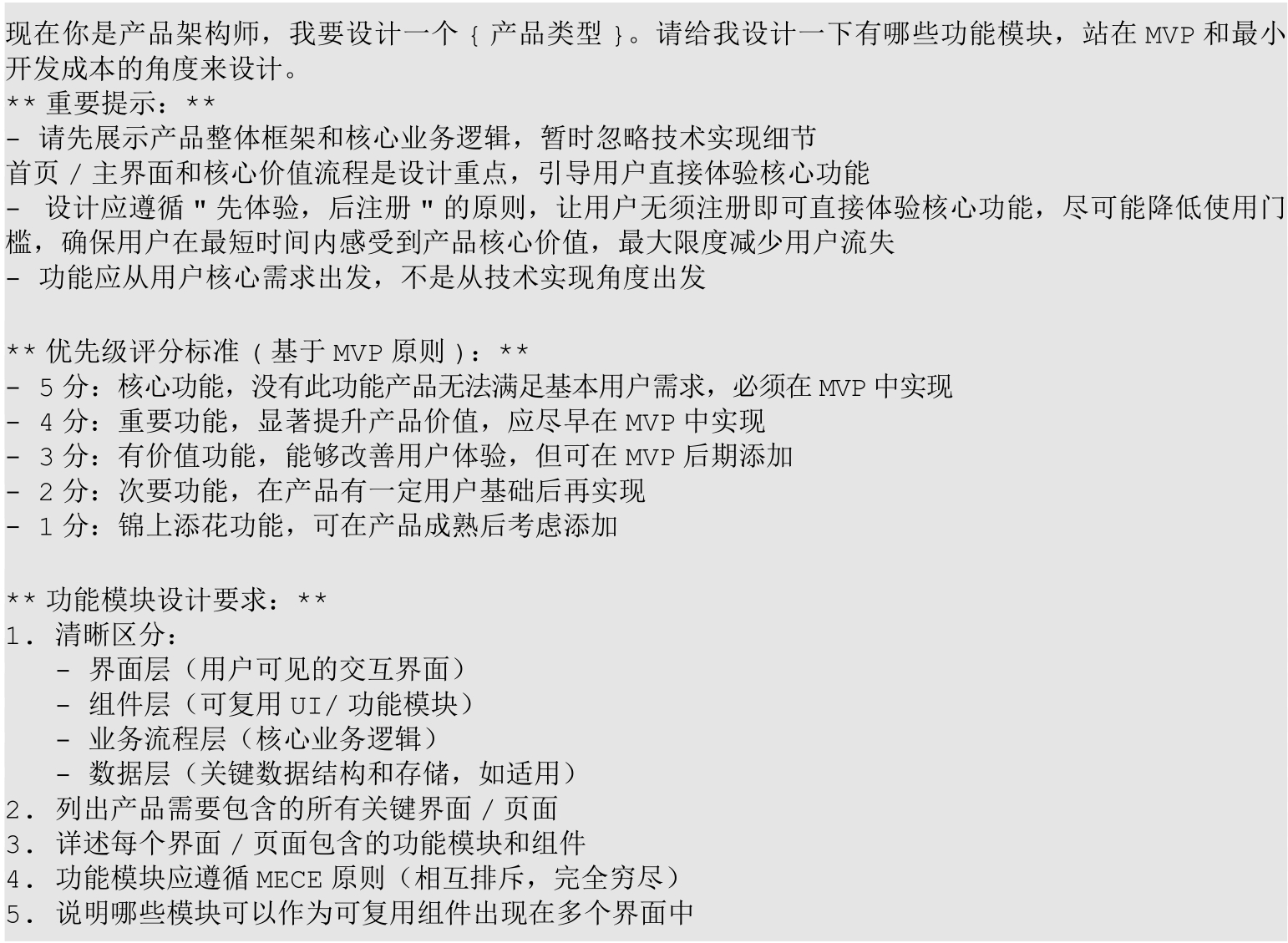 通过这种方式,可以逐步优化架构设计,直到它完全符合产品愿景和开发需求。这个模板的强大之处在于它能够为不同类型的产品提供结构化的架构设计,帮助你更清晰地规划开发路径。