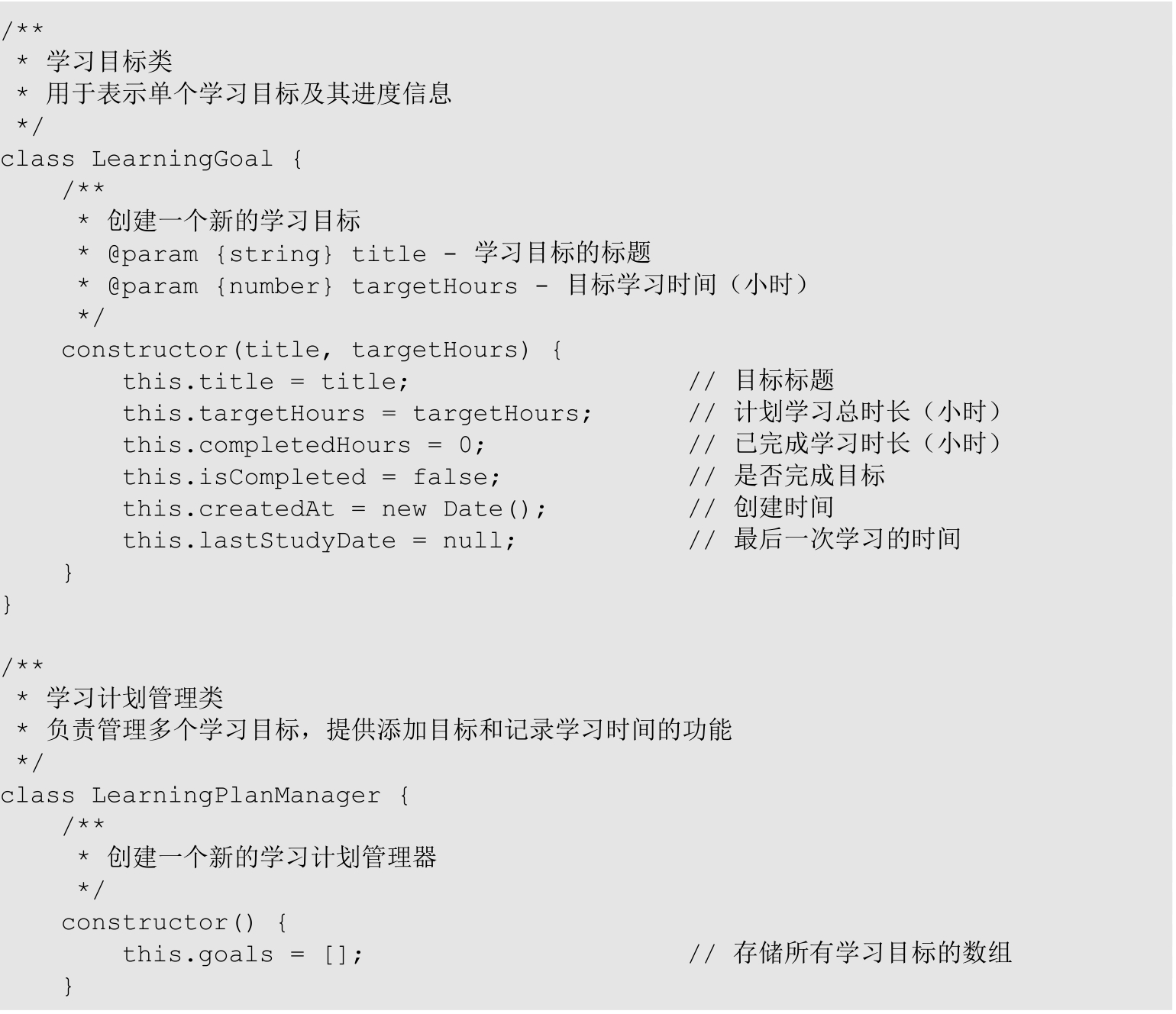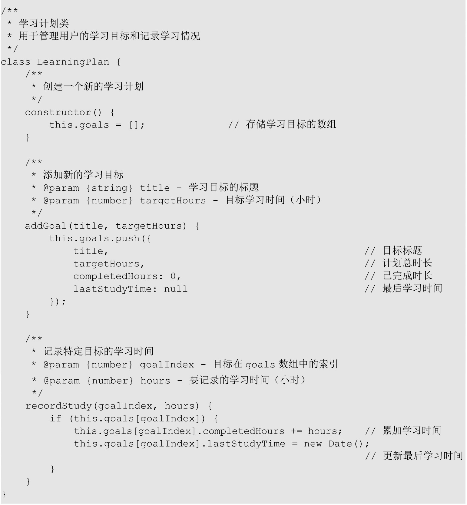 请帮我实现一个最基础的学习计划管理功能,需要能添加学习目标和记录学习时间。