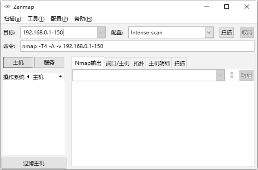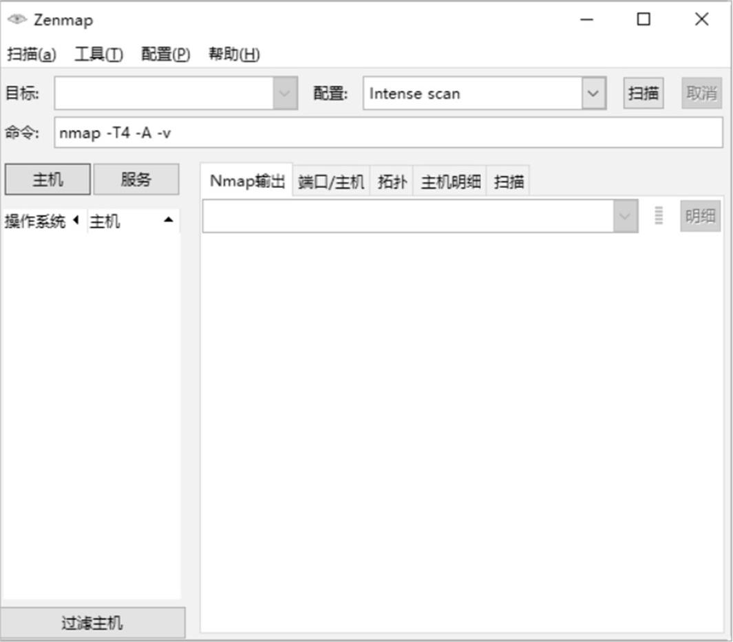 步骤 01 在桌面上双击Nmap程序图标,打开Nmap操作界面,如图2-13所示。