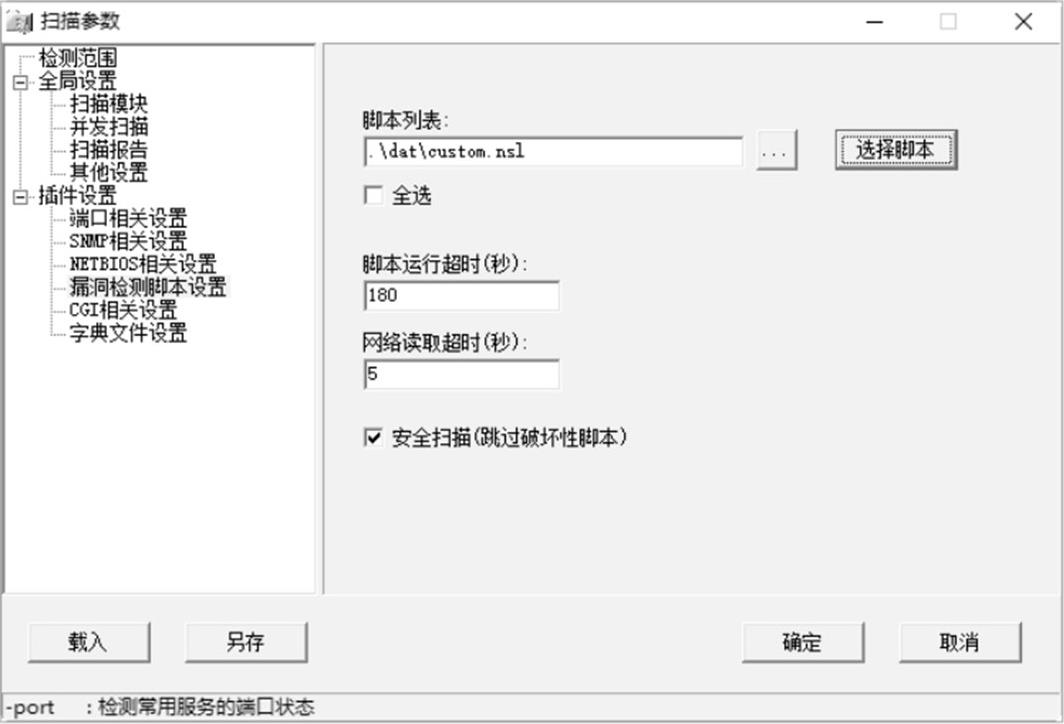 步骤 12 选择检测的脚本文件之后,单击“确定”按钮,返回“扫描参数”对话框,分别设置脚本运行超时和网络读取超时等属性,如图2-57所示。