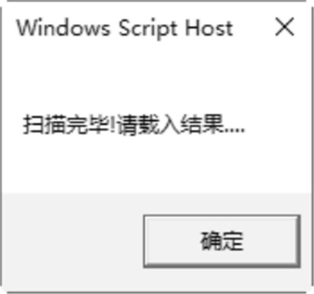 步骤 04 单击“确定”按钮,将会弹出“Windows Script Host”对话框,在其中可以看到“扫描完毕,请载入结果…”提示信息,如图2-67所示。