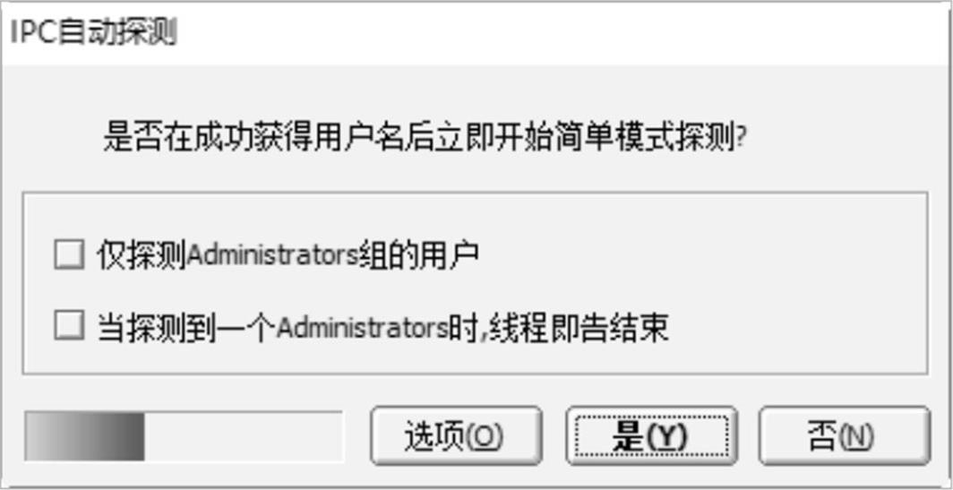 步骤 05 单击“下一步”按钮,弹出“IPC”对话框,在该对话框中可以对IPC检测项目进行设置,这里取消选择“仅对Administraotors组进行猜解”复选框,如图2-41所示。