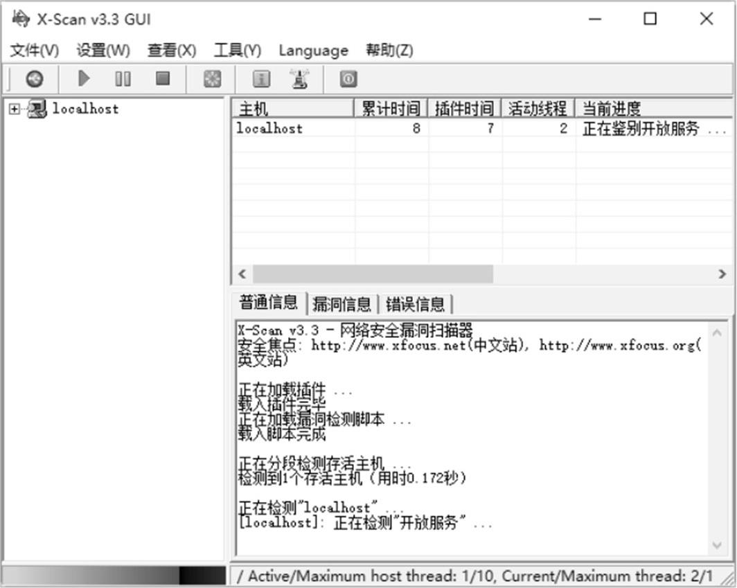 在使用X-Scan扫描器扫描系统之前,需要先对该工具的一些属性进行设置,如扫描参数、检测范围等。设置和使用X-Scan的具体操作步骤如下: