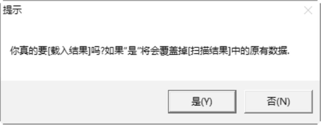 步骤 05 单击“确定”按钮,返回“S-GUI Ver 2.0”主窗口,然后单击右侧的按钮“载入结果”,弹出“提示”对话框,在其中可以看到“你真的要【载入结果】吗?如果‘是’将会覆盖掉【扫描结果】中的原有数据”提示信息,如图2-68所示。