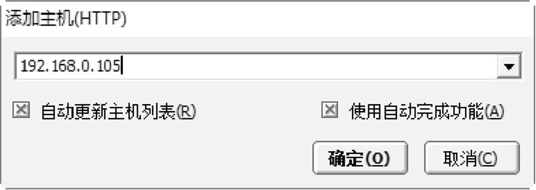 步骤 04 弹出“添加主机(HTTP)”对话框,输入要扫描主机的IP地址(这里以192.168.0.105为例),如图2-26所示。