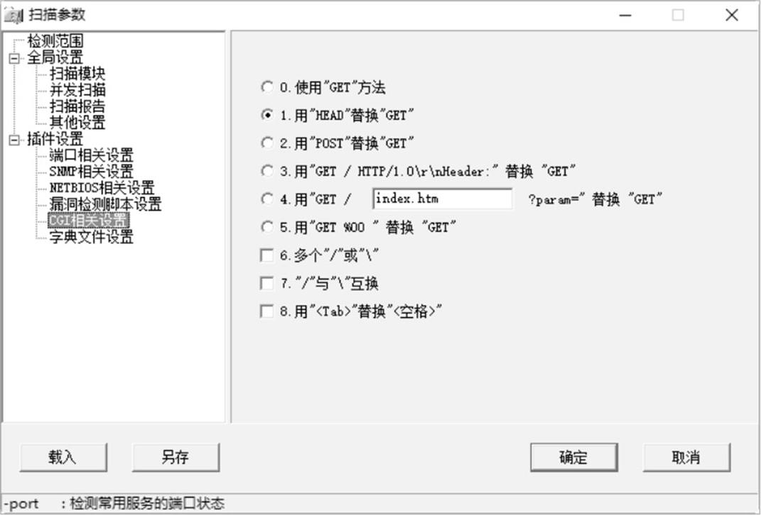 步骤 13 选择“CGI相关设置”子选项,在其中可以设置扫描时需要使用的CGI选项,如图2-58所示。