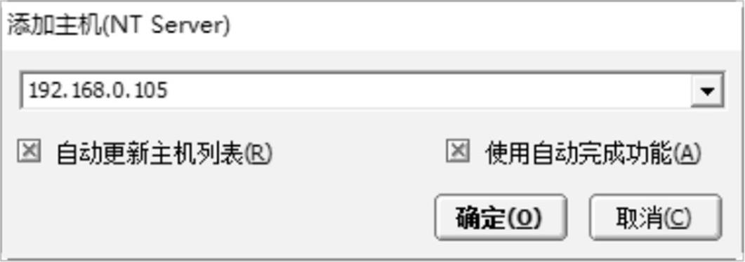步骤 02 弹出“添加主机(NT Server)”对话框,输入要扫描主机的IP地址(这里以192.168.0.105为例),如图2-32所示。