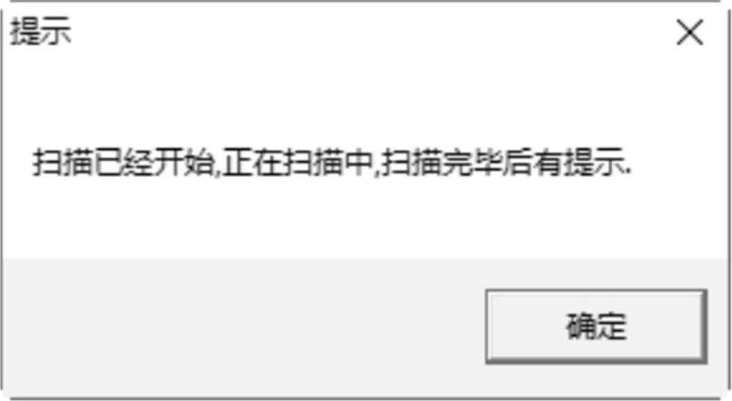 步骤 03 设置完毕后,单击“开始扫描”按钮,弹出“提示”对话框,在其中可以看到“扫描已经开始,正在扫描中,扫描完毕后有提示”提示信息,如图2-66所示。