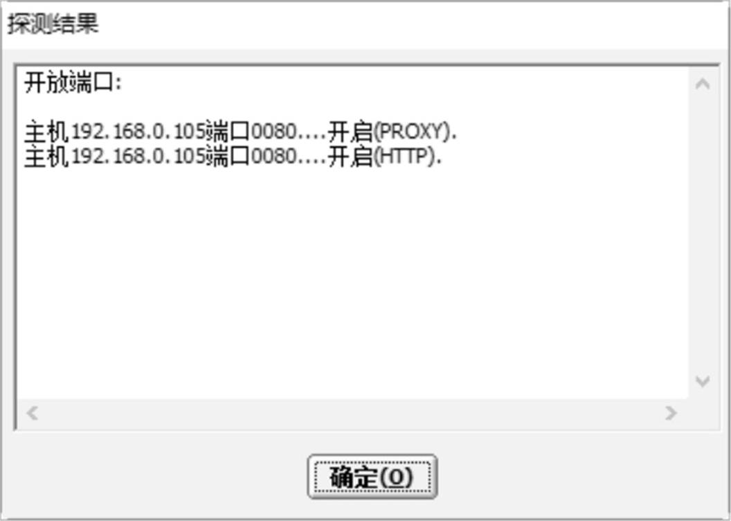 步骤 08 扫描完毕后,将会自动弹出“探测结果”对话框,如果目标主机存在开放端口,就会在该对话框中显示出来,如图2-30所示。