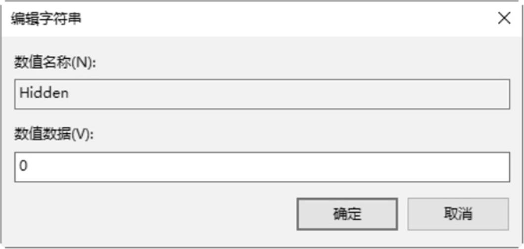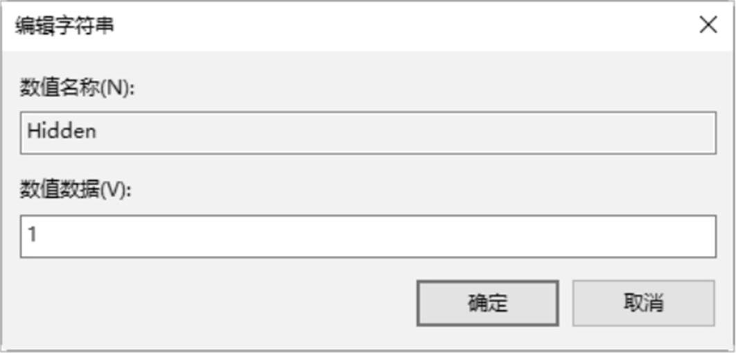 步骤 04 选择“Hidden”子键,右击,在弹出的快捷菜单中选择“修改”命令,弹出“编辑字符串”对话框,如图2-88所示。