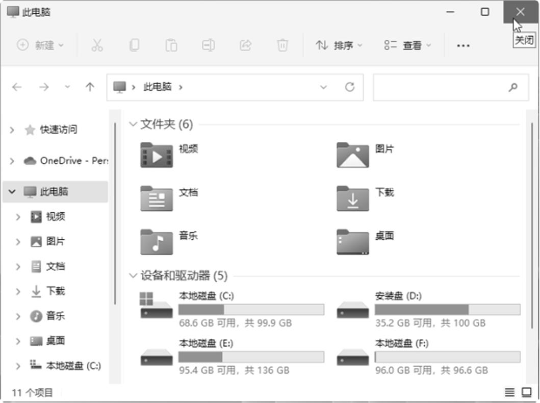 步骤 01 单击所有打开的应用程序窗口右上角的“关闭”按钮,退出正在运行的程序。如图2-30所示。