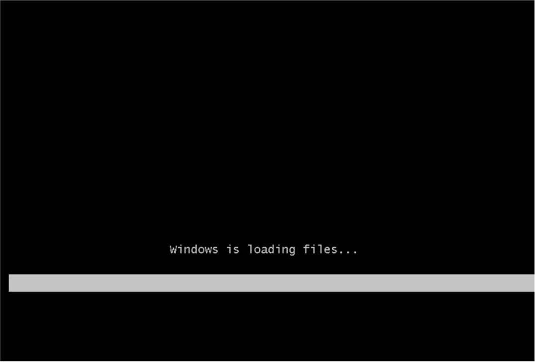步骤 01 将Windows 11操作系统的安装光盘放入光驱中,重新启动计算机,这时会进入Windows 11操作系统安装程序的运行窗口,提示用户安装程序正在加载文件,如图2-23所示。