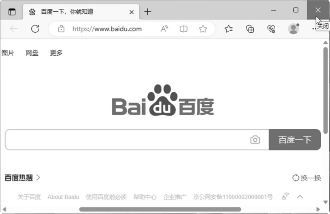 步骤 01 单击所有打开的应用程序窗口右上角的“关闭”按钮,退出正在运行的程序。如图2-33所示为edge浏览器运行窗口。