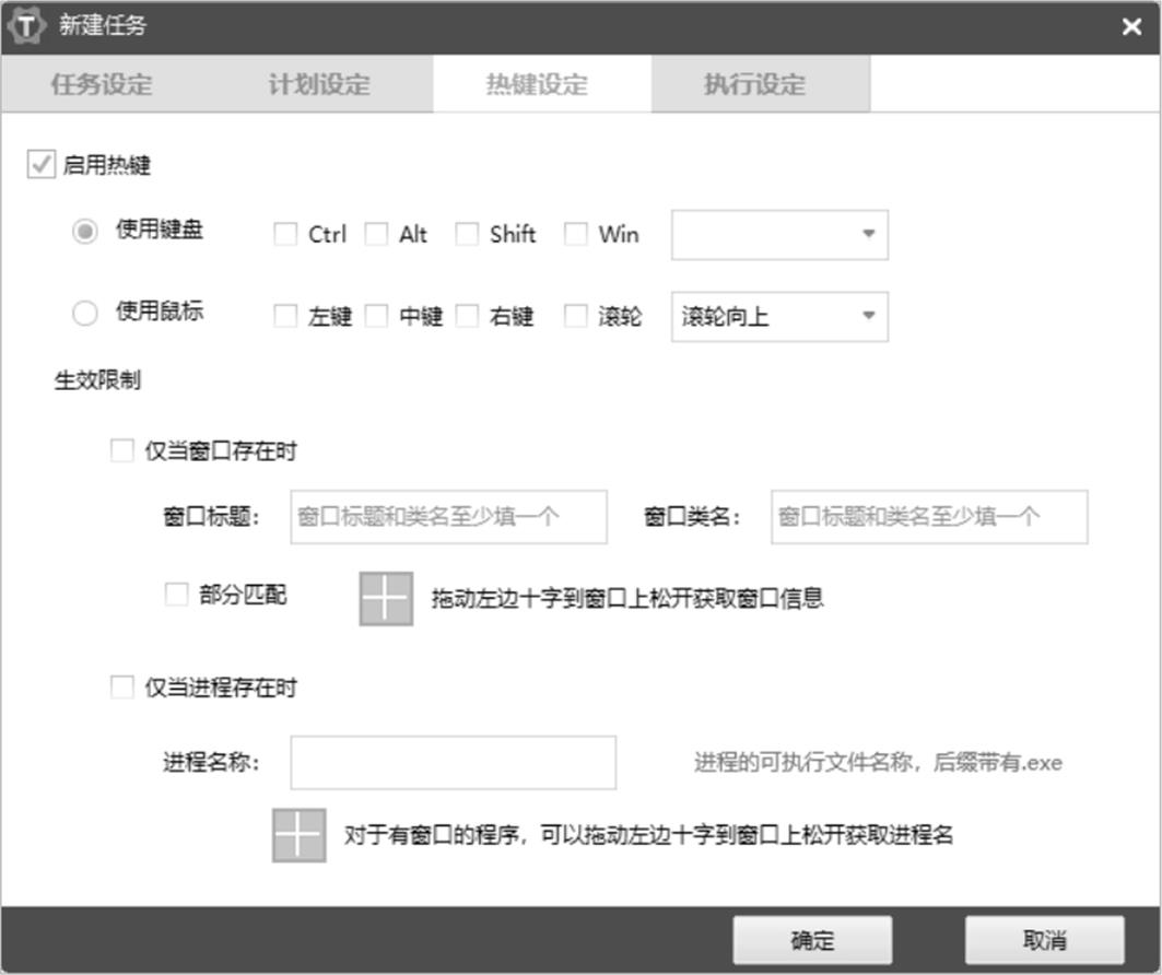 步骤 04 选择“热键设定”选项卡,在其中可以启动热键,并在下方设置任务的快捷键,如图2-78所示。